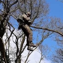 Video | Militaire parachutist zit vast in boom tijdens herdenking in Drenthe